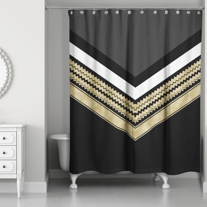 Chic Chevron Arrow Shower Curtain In Black Gold Bed Bath