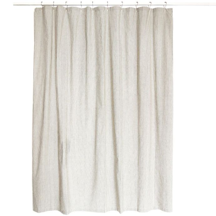 Modern Farmhouse Shower Curtain Beige Grey Stripe Ticking